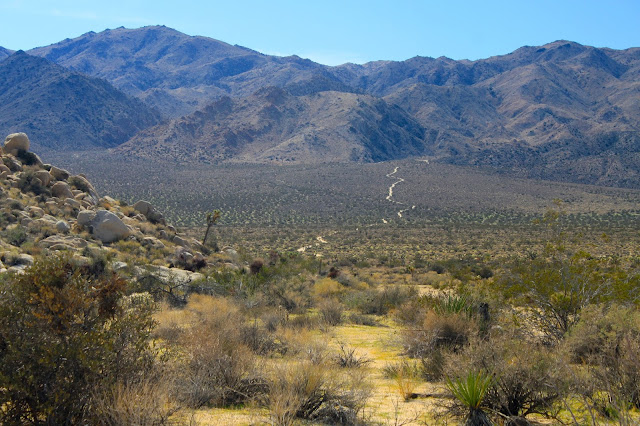 | Looking down from Lost Horse Mine, to the rock piles of Joshua Tree. |
